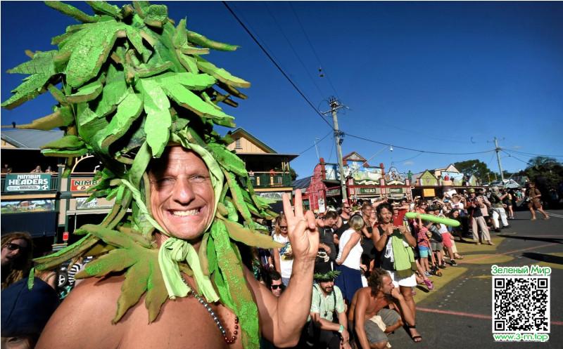 Женщины в цветастых одеяниях и с броским макияжем, которых называют ганджафеями, вместе с другими демонстрантами прошли по улицам небольшого посёлка Нимбин в австралийском штате Новый Южный Уэльс. Парад проводили под лозунгом за окончание многолетней войны с марихуаной, от которой пострадали сотни тысяч безобидных травокуров.