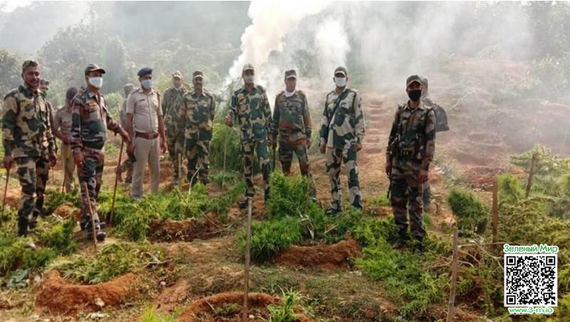 Силовики прознали о незаконной конопляной ферме рядом с деревней Сидхай Моханпер в штате Трипура. Приехали, срубили всё (60 тысяч кустов на минуточку) и собрались уезжать.