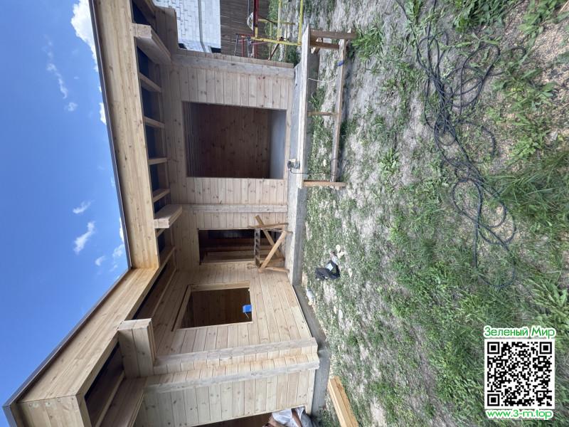 Банька с окнами в пол, с пологой крышей) интересна задумка) уже хочу быстрее закончить , чтобы посмотреть в живую