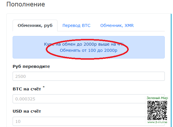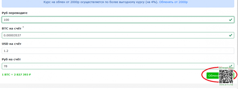 Далее необходимо заполнить сумму и кликнуть "Обменять рубли".