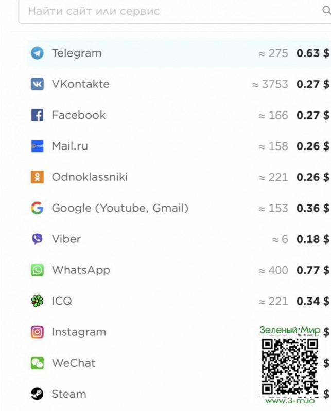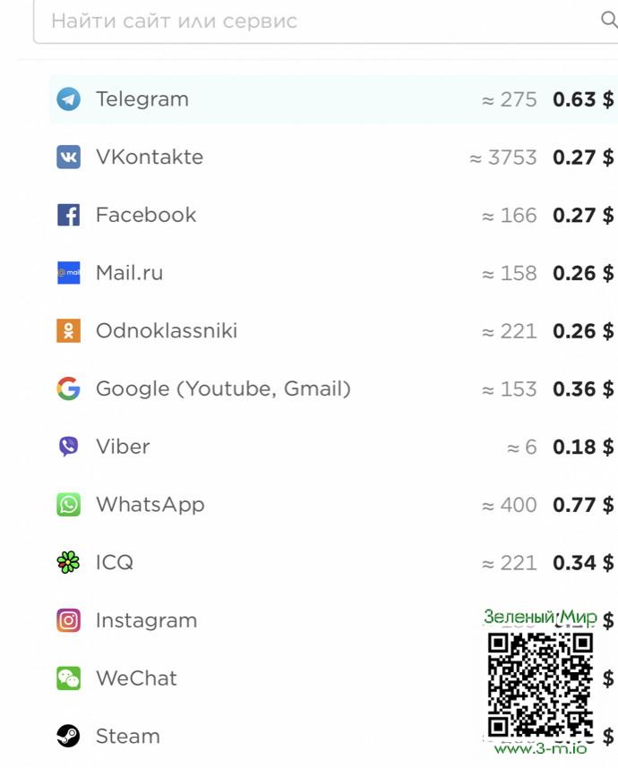 Для этого выбираем сервис смс активаций: