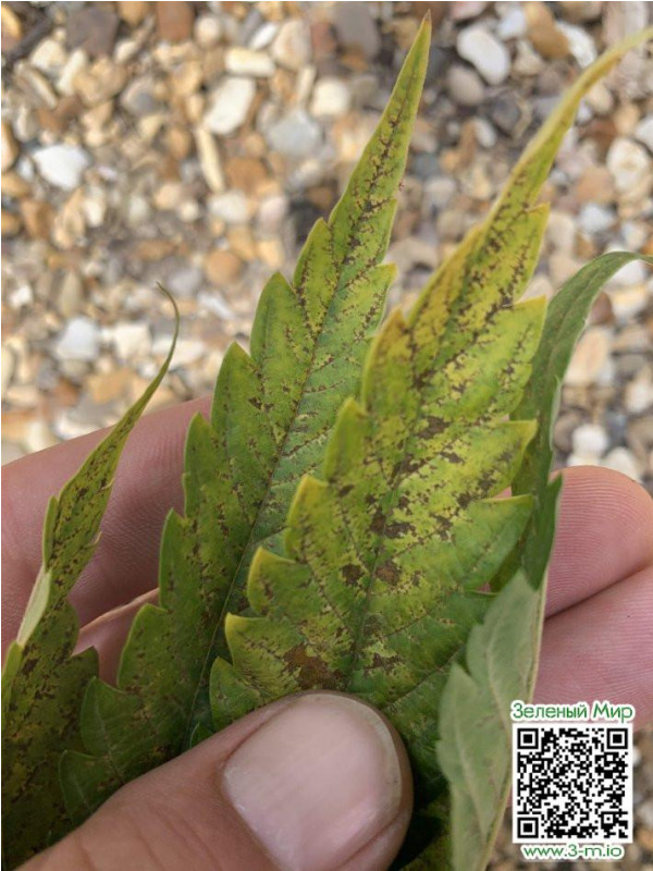Такие пятна чаще всего возникают на листьях при дефиците калия, ещё одного важного макроэлемента, который помогает транспортировать воду от корней к остальной части растения.