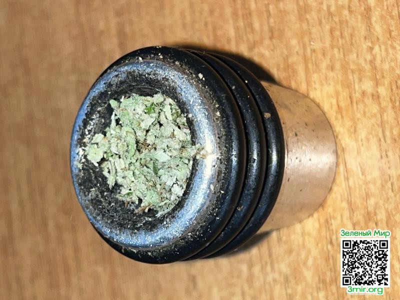 Плотная, собранная, с насыщенным зелёным цветом. Смолистость сразу заметна, поверхность «живая». Есть редкие оранжевые волоски, которые добавляют контраст.