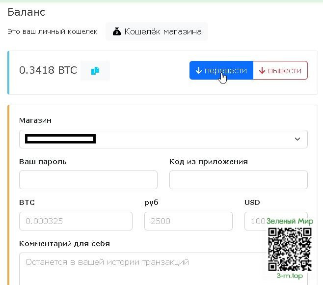 Беспроцентный перевод с личного счёта на счёт магазина готов!