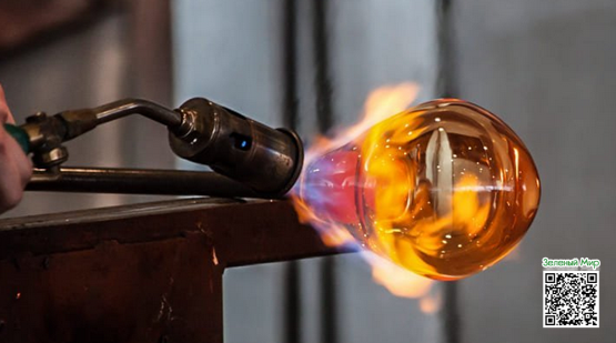 Стеклодувы использует паяльную лампу, чтобы нагревать стекло. Затем, используя полую стальную трубу или инструмент, называемый паяльной трубкой, художник вдувает воздух в горячее стекло, заставляя его вздуться в большой стеклянный пузырь. Во то же время художник должен постоянно вращать стеклянную трубку, чтобы расширенное основание не стало кривым или неровным.