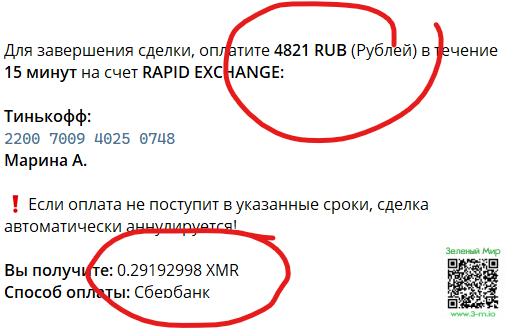 4100 при обмене монеро - выходит 4821 (4100+17%= 4821)