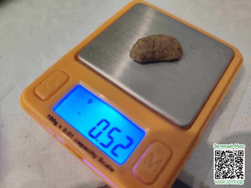 Отделив 2 внушительные точки, я взвесил оставшийся кусок, весы показали 0.40г, а значит первая порция была 0.12г.