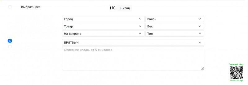 в окне добавления кладов без фото, кнопка "+ клад" при начатии отскакивает в низ страницы, что не совсем удобно когда нужно добавить больше 1-2 кладов с одним типом/районом/фасовкой. предлагаю перенести ее в верх, а еще лучше рядом с ней добавить количество добавляемых кладов, например 10 разом. добавил 10 кладов, выбрал все, выбрал товар/фасовку/район/тип, применил и занимаешься копипастом. меньше действий при таком раскладе чем добавлять по одному = экономия времени